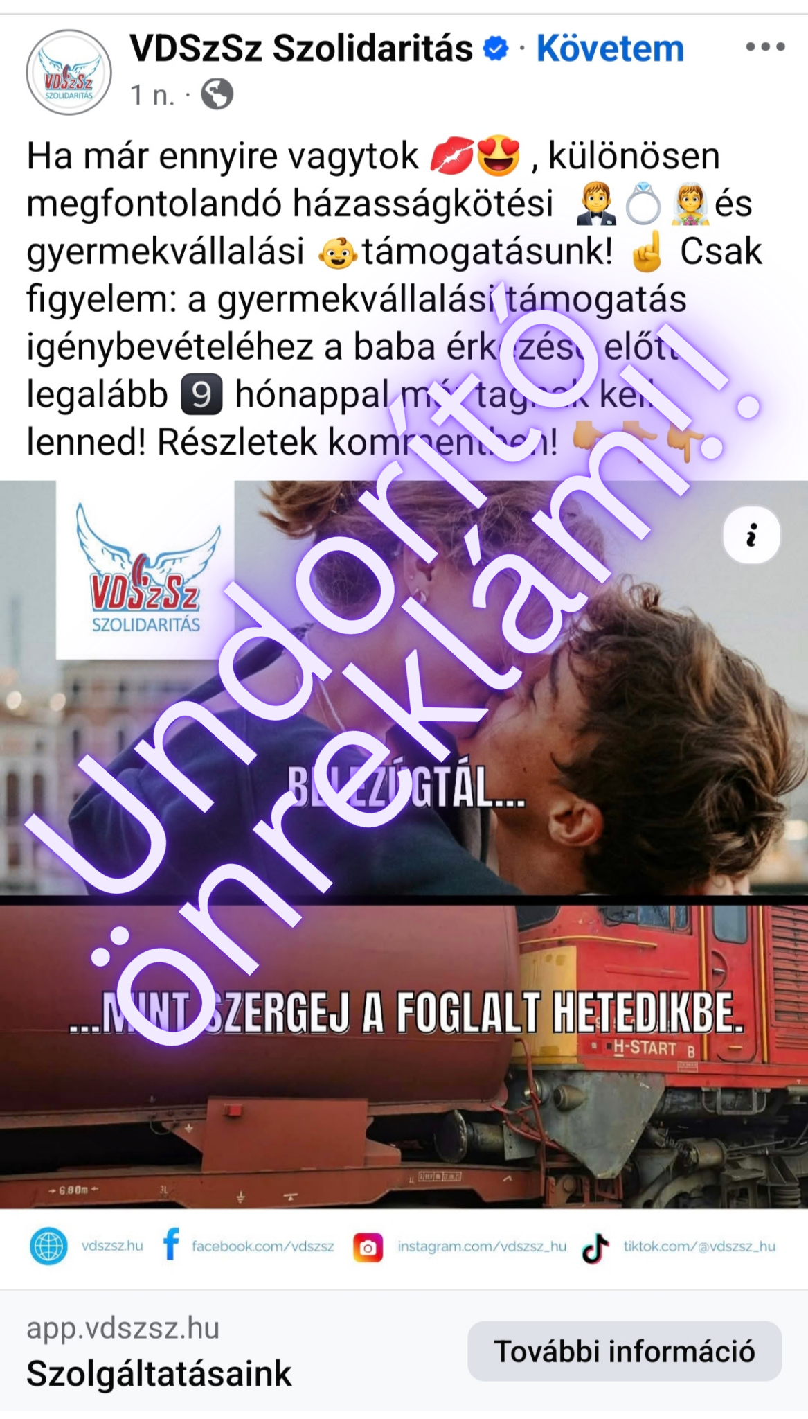 Kétségbeejtően bántó reklám a VDSzSz Szolidaritás Facebook oldalán