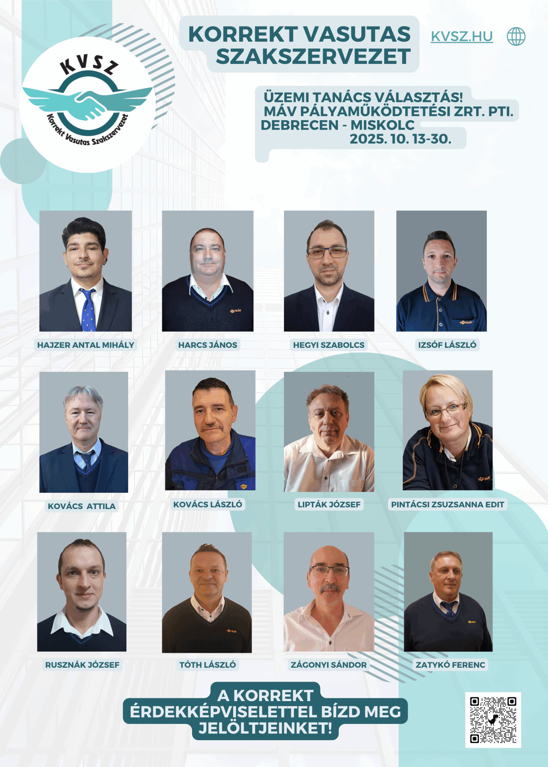 Az elmúlt években számos kihívással kellett szembenéznie a vasutasságnak. Éppen ezért fontos, hogy olyan képviselőket válasszunk, akik képesek megvédeni a jogainkat és javítani a munkakörülményeinken. A legfontosabb számunkra, hogy minden munkatársunk biztonságos és egészséges munkakörülmények között, a megfelelő bérért dolgozhasson.